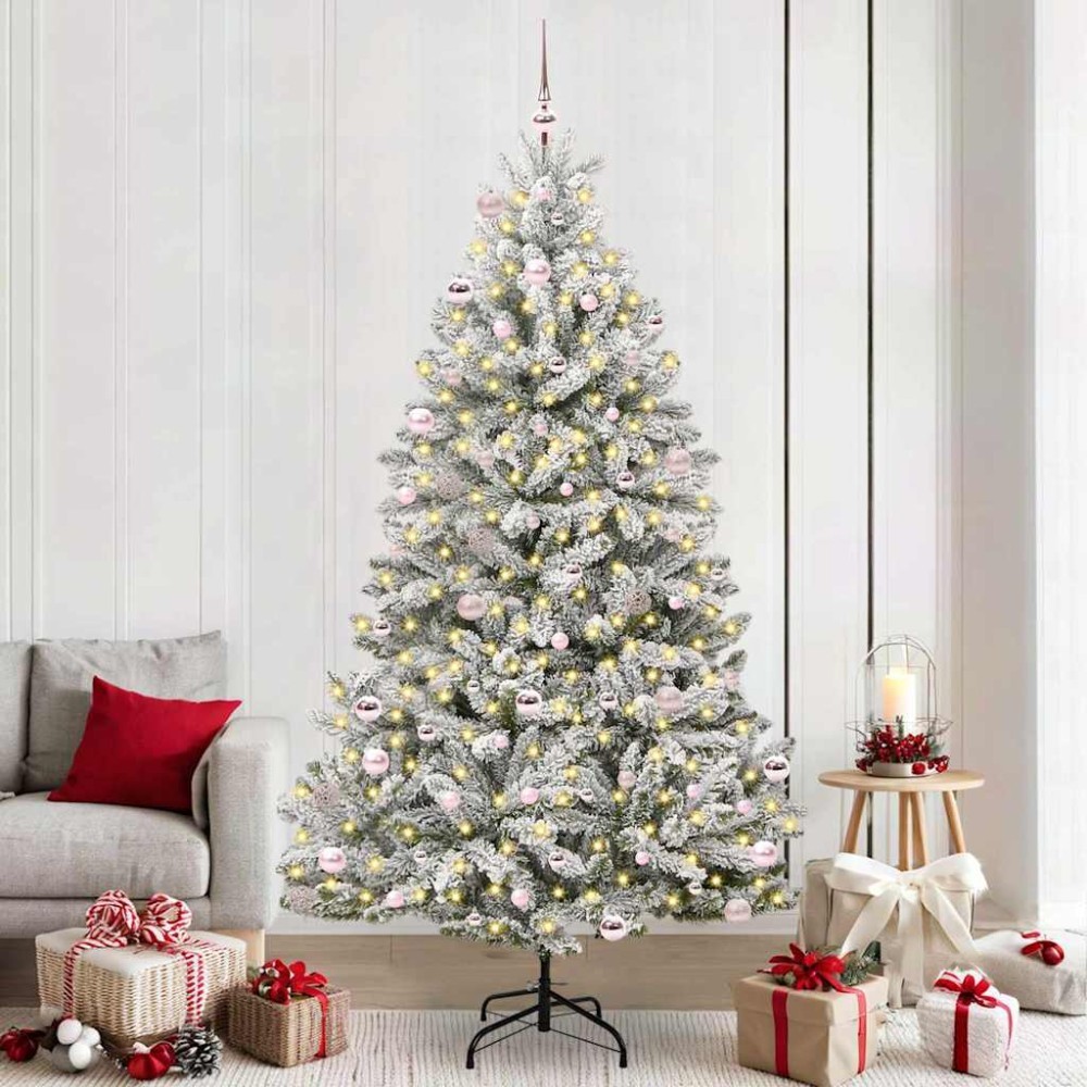 vidaXL Brad de Crăciun artificial Verde și alb 240 cm PVC și Metal 3395768