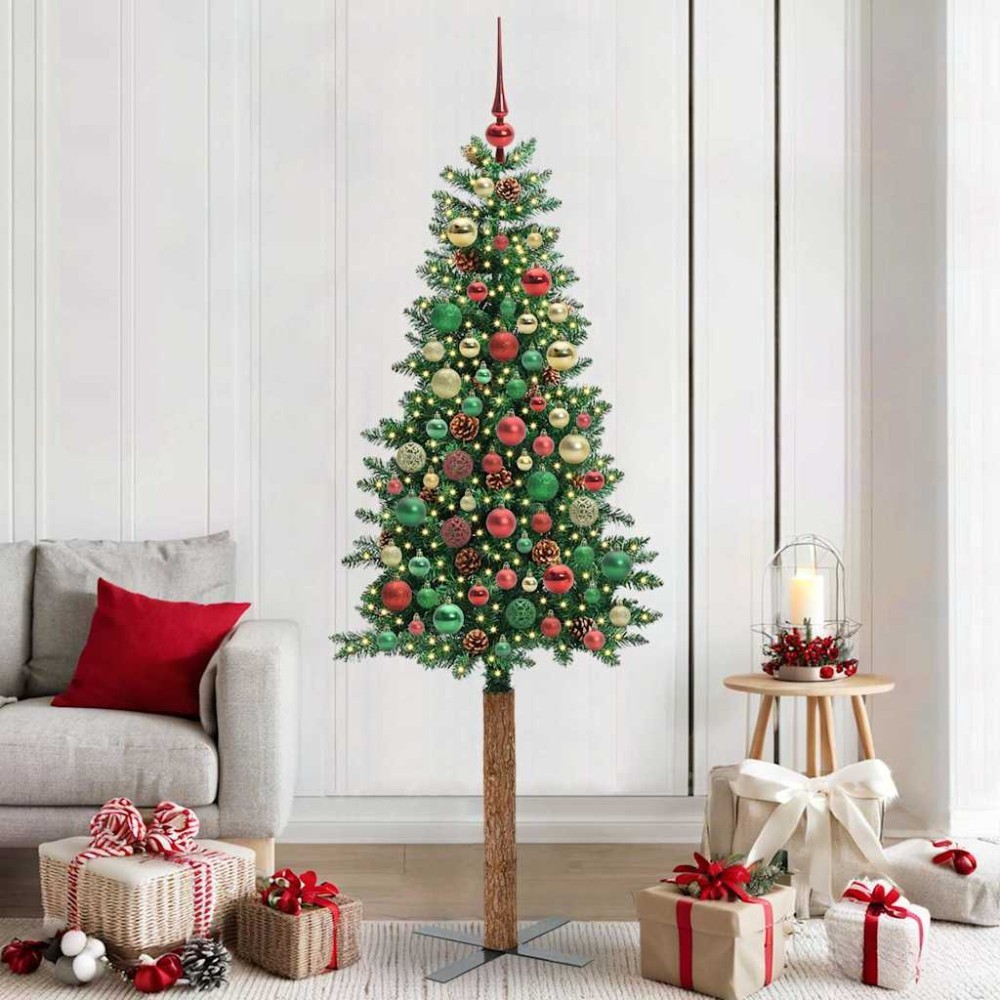 vidaXL Brad de Crăciun subțire Verde 210 cm PVC și lemn de PIN masiv 3394885