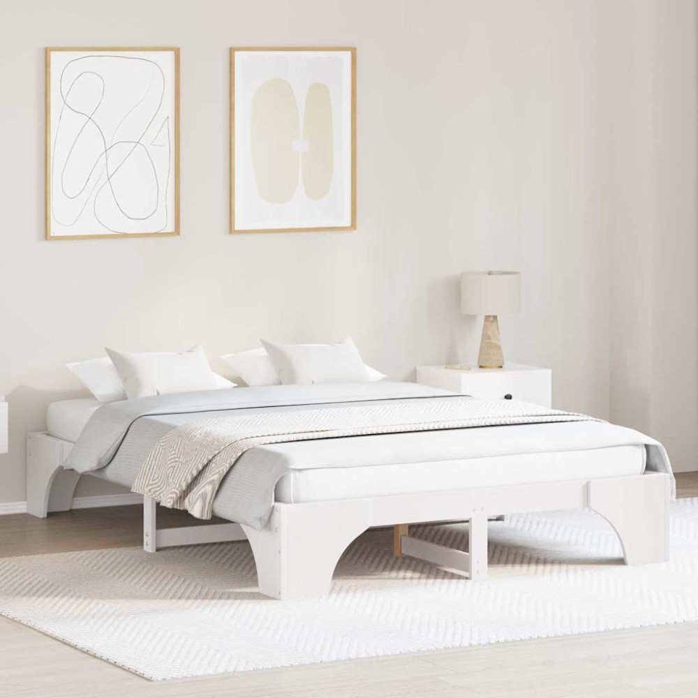 vidaXL Cadru de pat Alb 140 x 200 cm Lemn masiv de pin 872945