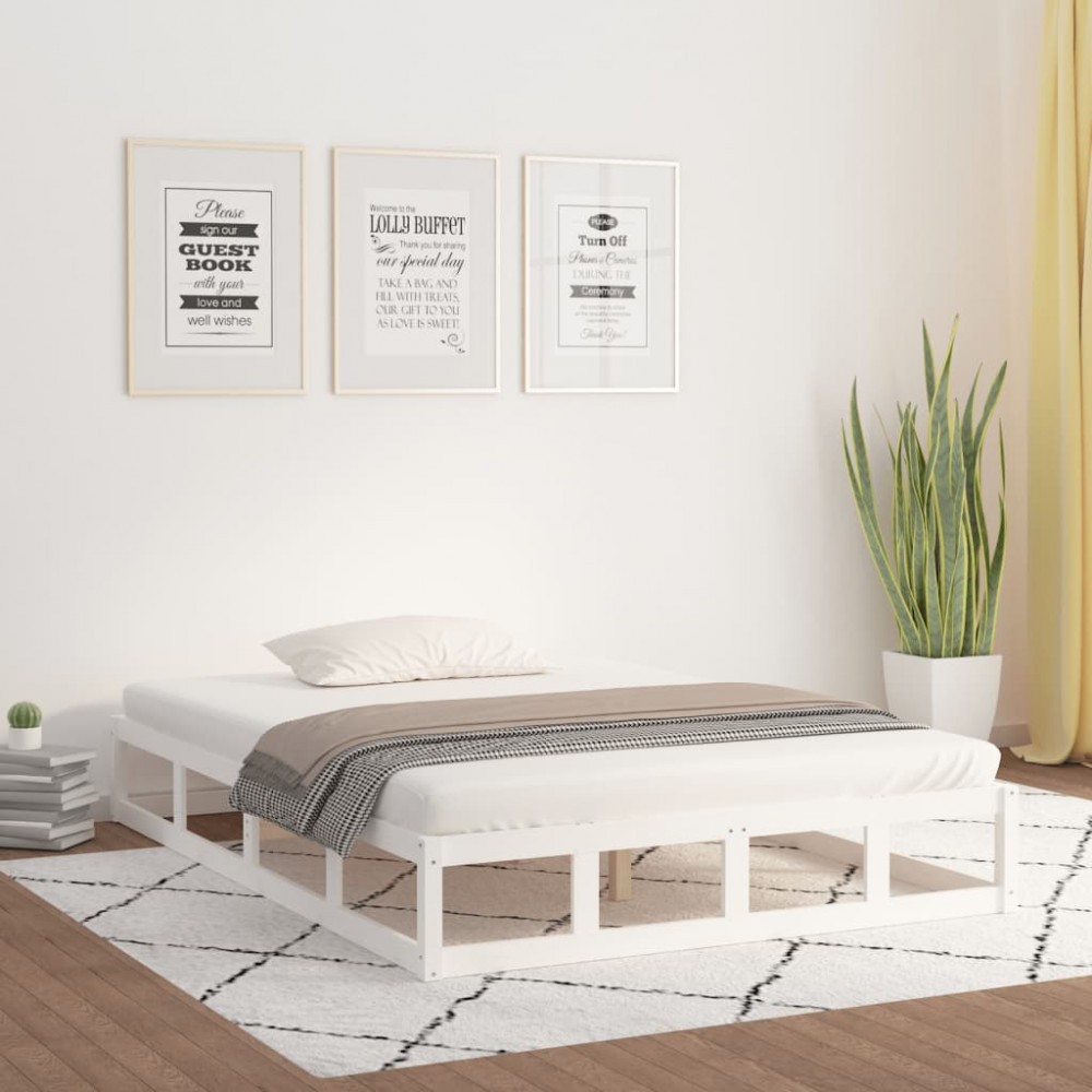vidaXL Cadru de pat, alb, 200x200 cm, lemn masiv