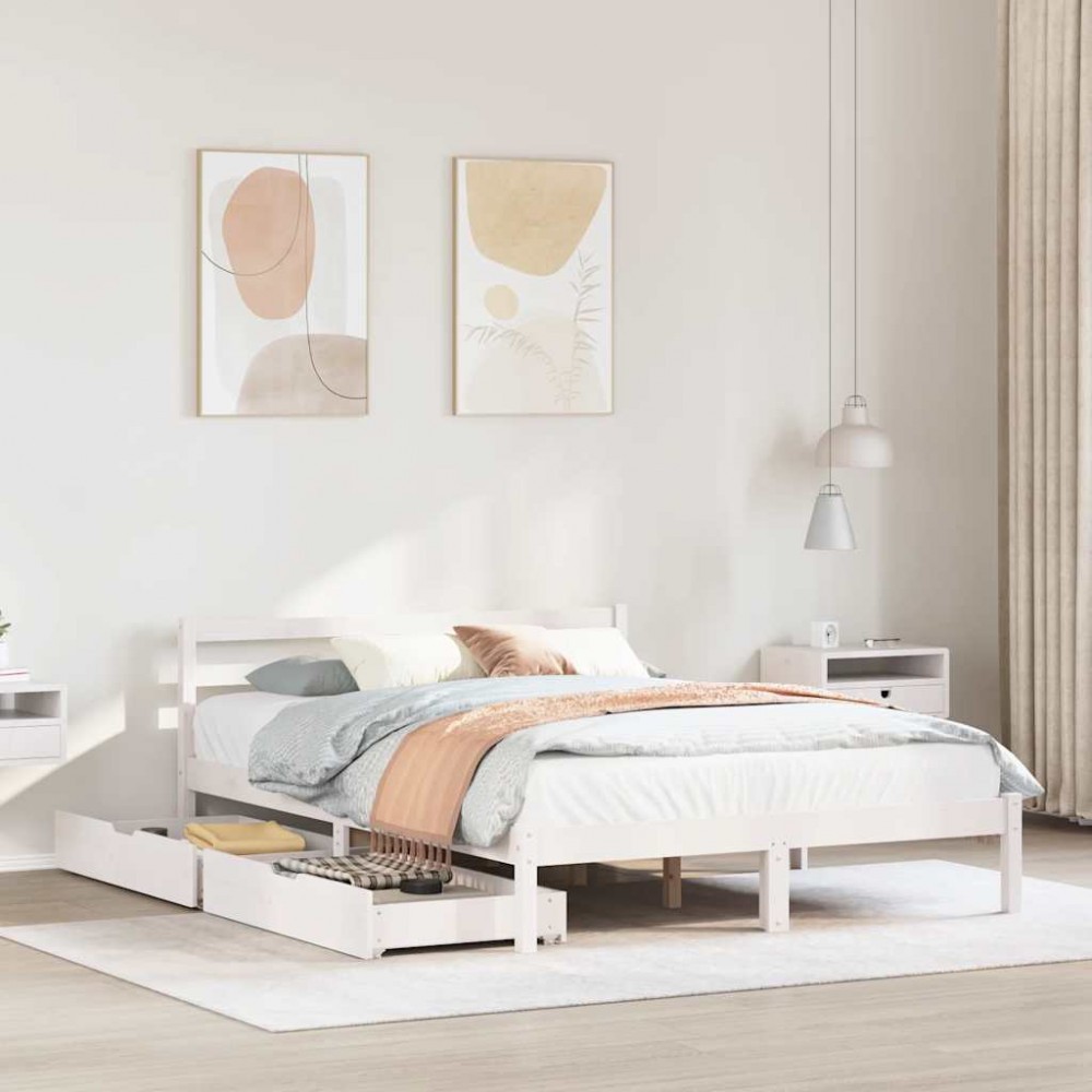 vidaXL Cadru de pat fără saltea, alb, 150x200 cm, lemn masiv pin 3301543