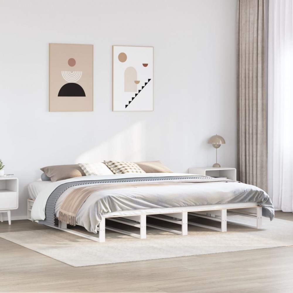 vidaXL Cadru de pat fără saltea, alb, 200x200 cm, lemn masiv pin 3302322