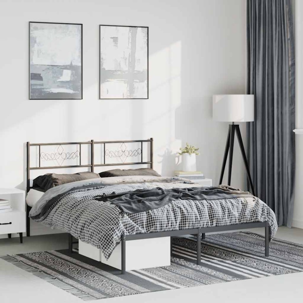 vidaXL Cadru de pat metalic cu tăblie, negru, 135x190 cm