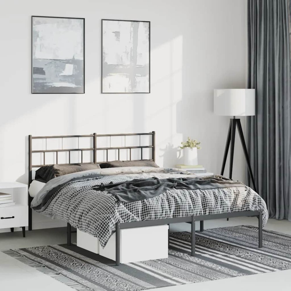 vidaXL Cadru de pat metalic cu tăblie, negru, 135x190 cm
