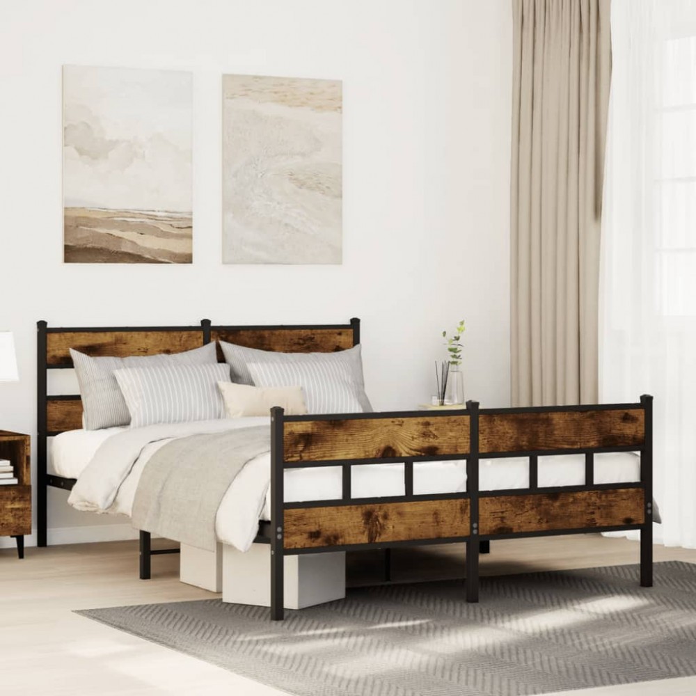 vidaXL Cadru pat metalic fără saltea, stejar fumuriu, 135x190 cm 4017070