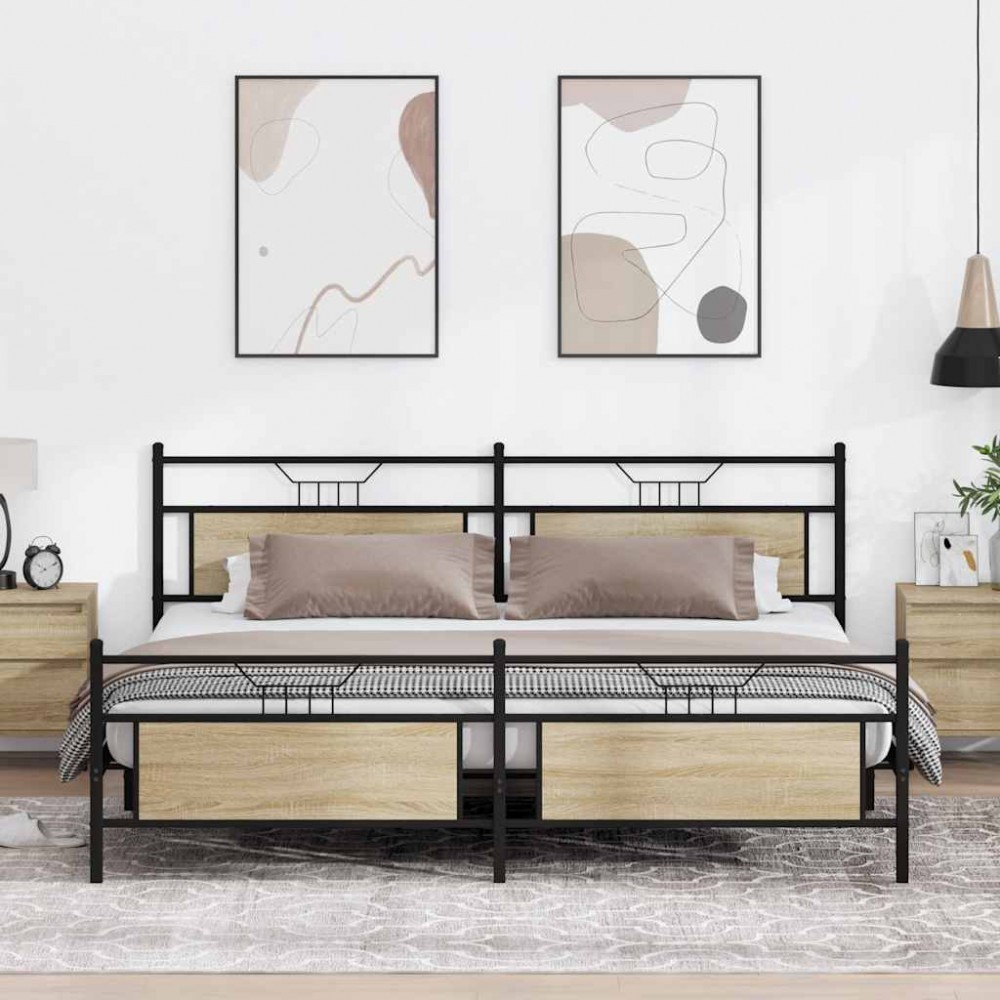 vidaXL Cadru pat metalic fără saltea, stejar sonoma, 200x200 cm 3325101