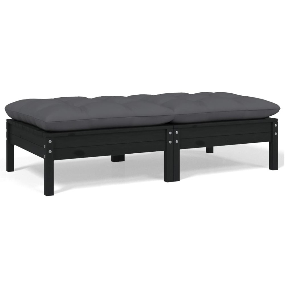vidaXL Canapea de grădină cu 2 locuri, cu perne, negru, lemn masiv pin 806662