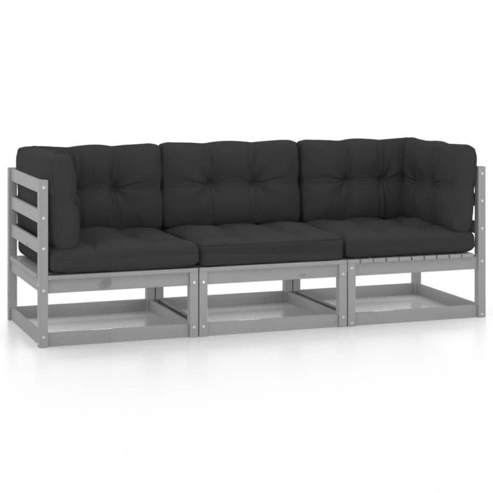 vidaXL Canapea de grădină cu 3 locuri, cu perne, lemn masiv de pin 3076371