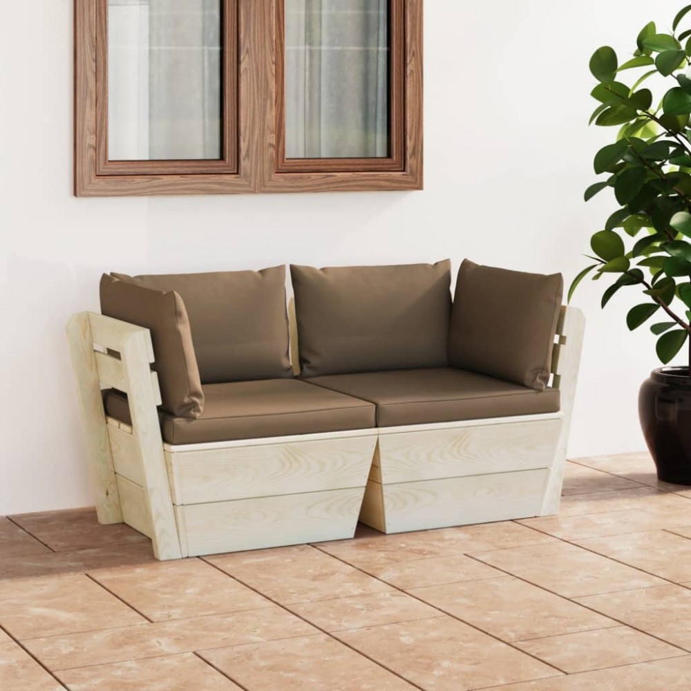 vidaXL Canapea grădină 2 locuri din paleți, cu perne, lemn molid 3063392