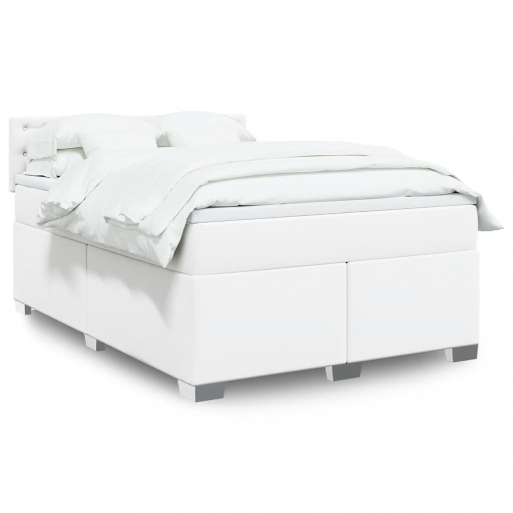 vidaXL Pat box spring cu saltea, alb, 140x190 cm, piele ecologică 3286121