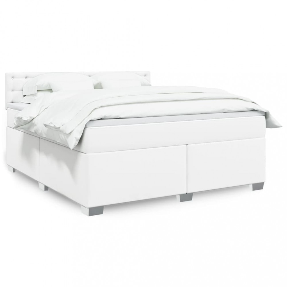 vidaXL Pat box spring cu saltea, alb, 180x200 cm, piele ecologică 3286133