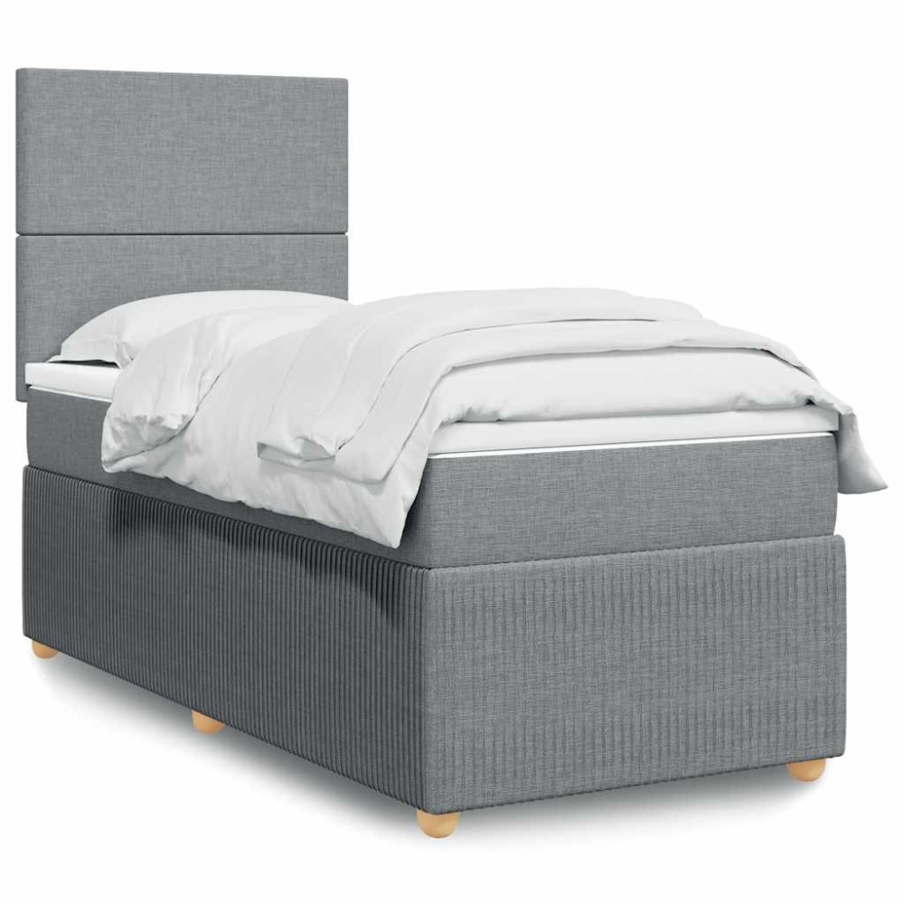 vidaXL Pat box spring cu saltea, gri deschis, 100x200 cm, textil 3291960