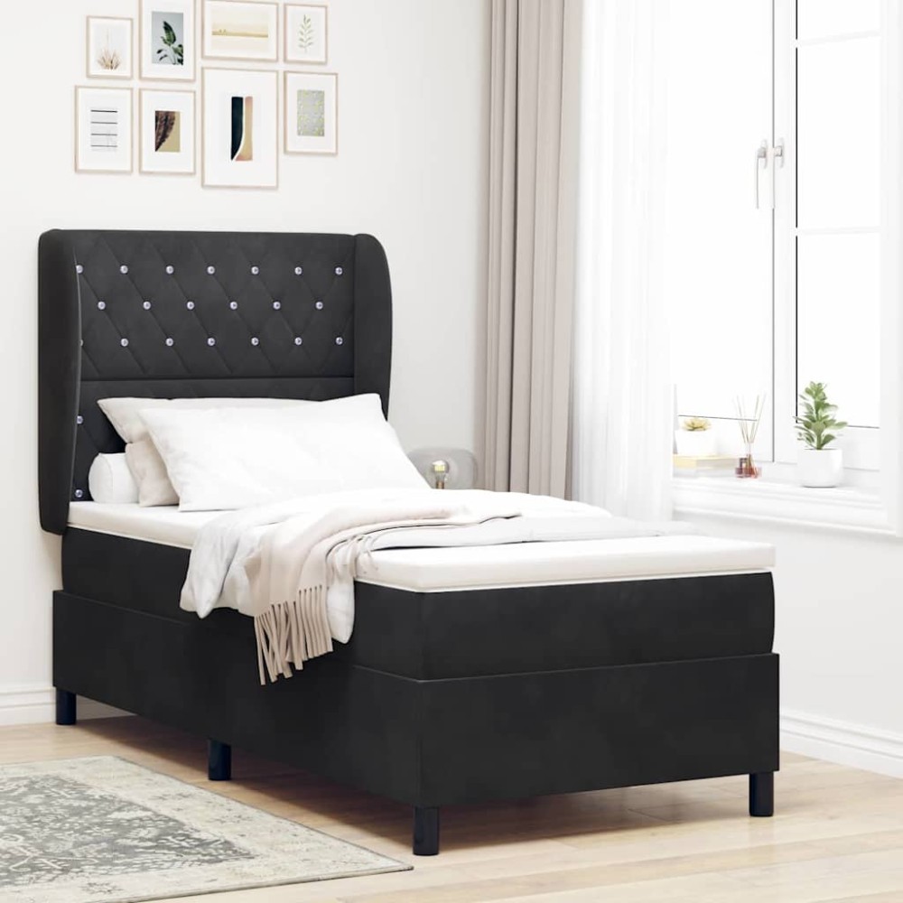 vidaXL Pat cu arcuri cu saltea cu headboard Negru 100 x 200 cm Catifea 3340864