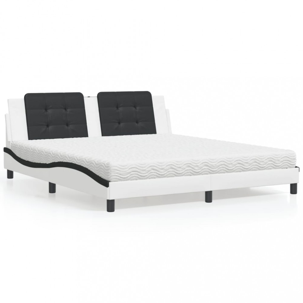 vidaXL Pat cu saltea, Zadar, alb și negru, 180x200 cm, piele ecologică 3208886