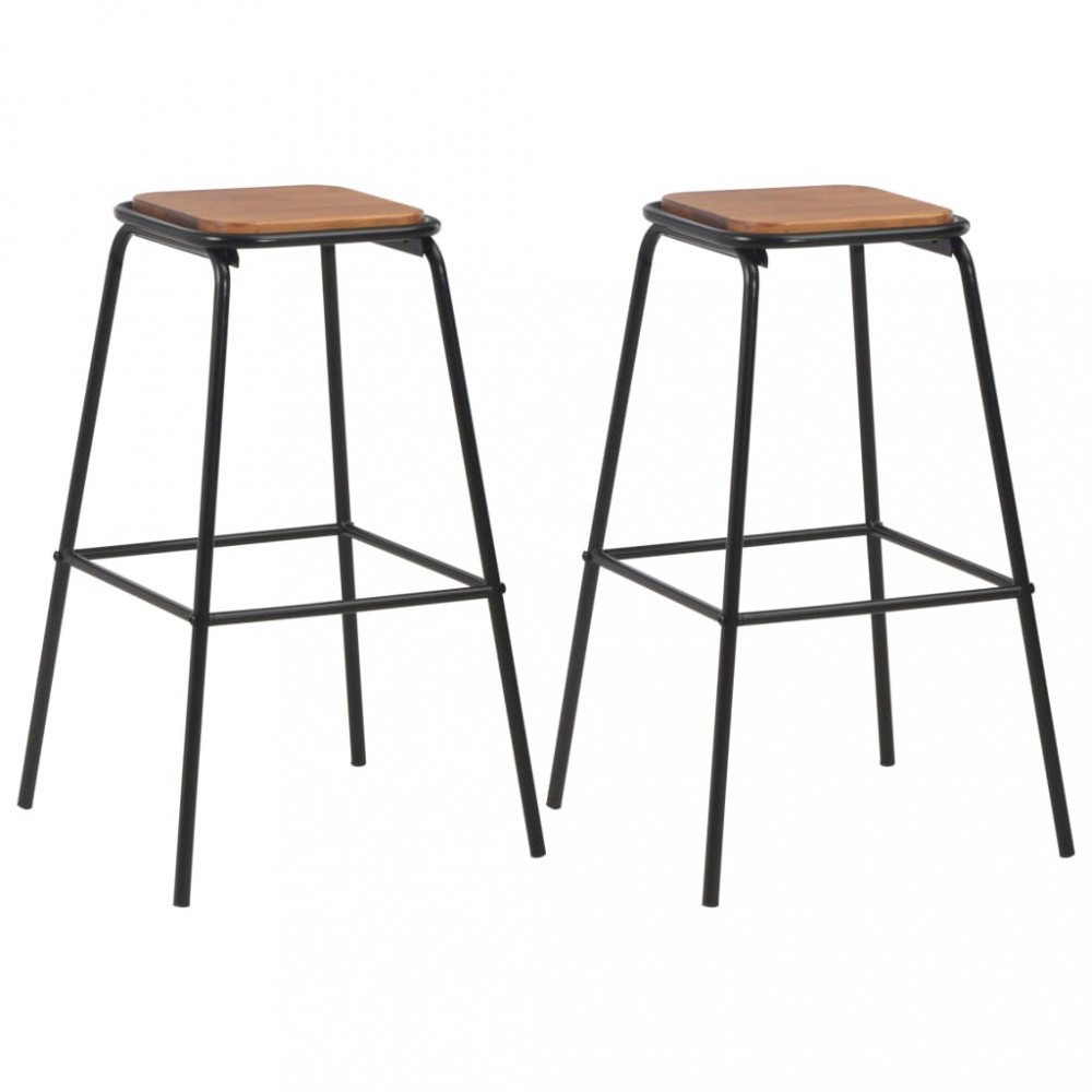vidaXL Scaune de bar, 2 buc., negru, lemn masiv de pin și oțel 280076