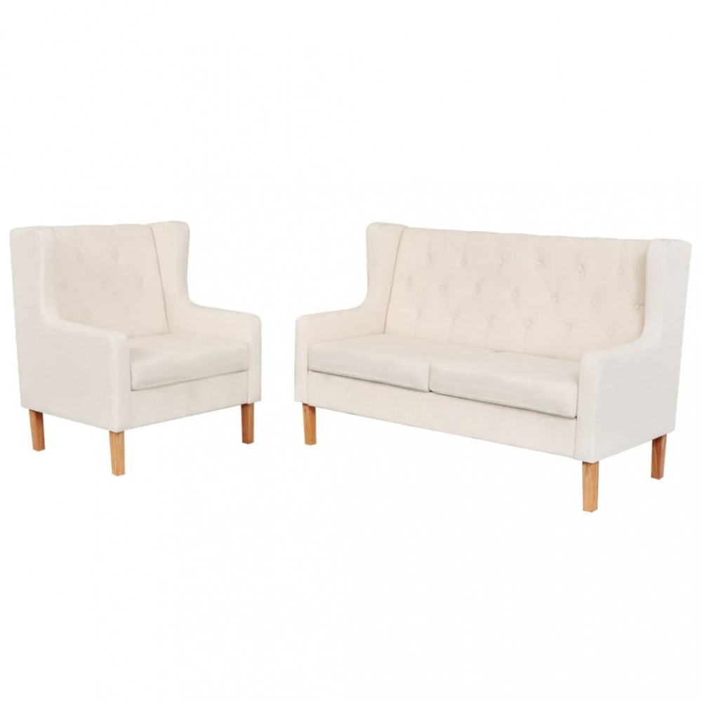 vidaXL Set canapea, 2 piese, textil, Alb crem 274928