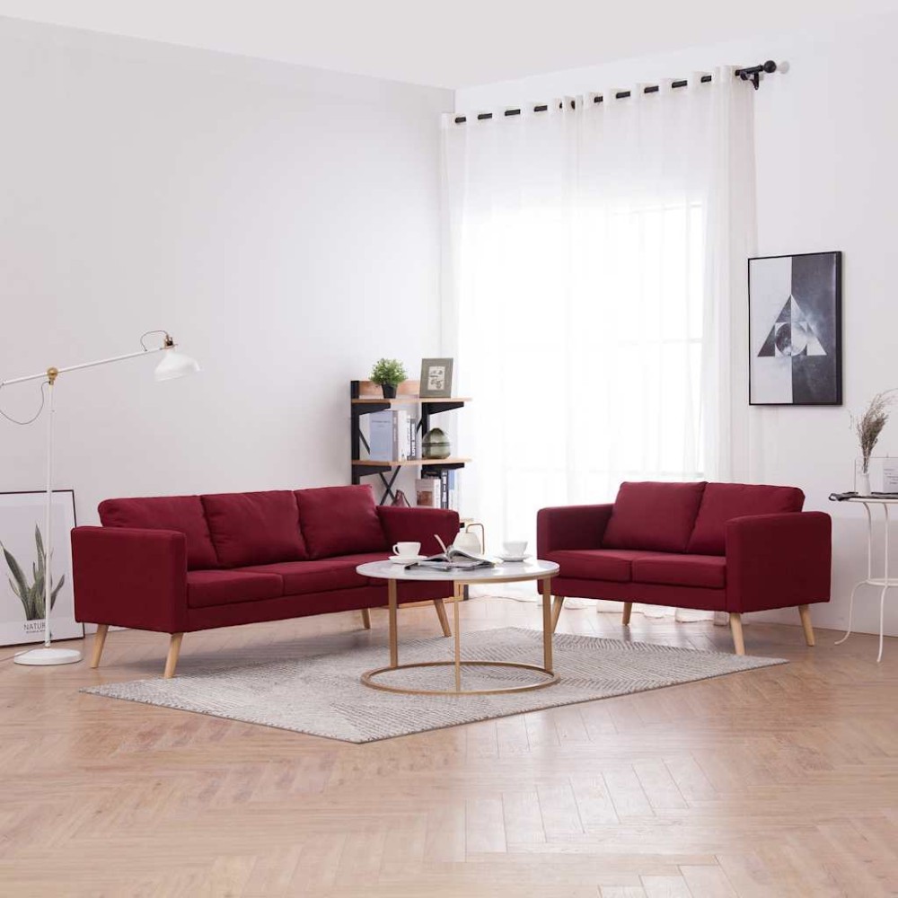 vidaXL Set de canapele, 2 piese, bordo, material textil