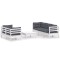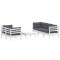 Acest set de mobilier de grădină este o alegere excelentă pentru a vă relaxa și a vă bucura de vreme, pentru a trage un pui de somn sau pentru a sta de vorbă cu familia sau prietenii. Setul de mobilier de relaxare pentru terasă este realizat din lemn masiv de pin, ceea ce îl face robust și stabil. Pernele adaugă extra confort. Puteți să îl combinați cu alte segmente modulare pentru a vă crea propriile configurații de seturi de grădină personale! Notă: Pentru a prelungi durata de viață a mobilierului dvs. de exterior, vă recomandăm să îl protejați cu o husă impermeabilă. Culoare: Alb Culoare pernă: Antracit Material: Lemn masiv de pin, material textil (poliester 100%) Dimensiuni canapea de colț/de mijloc: 63,5 x 63,5 x 62,5 cm (l x ad. x î) Dimensiuni taburet/masă: 63,5 x 63,5 x 28,5 cm (l x ad. x î) Dimensiuni pernă de șezut: 60 x 60 x 5 cm (L x l x gros.) Dimensiuni pernă de spătar/laterală: 60 x 32 x 5 cm (L x l x gros.) Asamblare necesară: Da Capacitate maximă de încărcare (per loc): 110 kg Pachetul de livrare conține: 4 x Canapea de colț 1 x Canapea de mijloc 1 x Taburet/masă 6 x Pernă de șezut 9 x Pernă de spătar/laterală Maximum 110 kg per loc.