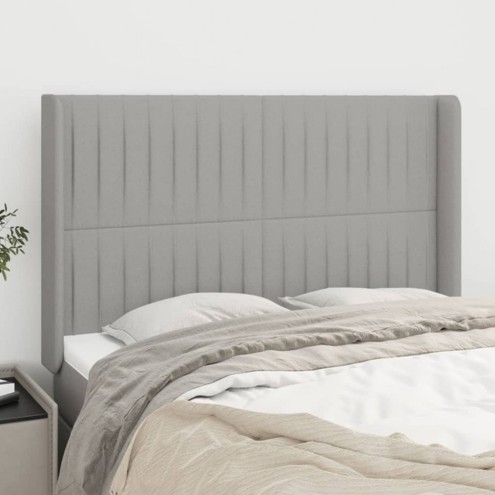 vidaXL Tăblie de pat cu aripioare gri deschis 147x16x118/128 cm textil 3119816