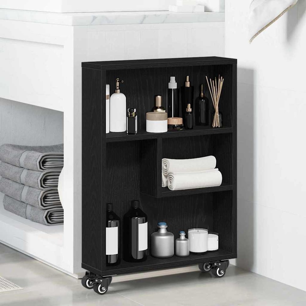 vidaXL Troler Îngust Stejar negru 48 x 13 x 68 cm Lemn compozit 868090
