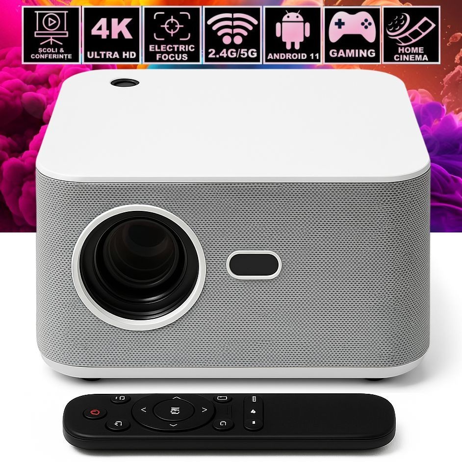 Bucurați-vă de experiențe cinematografice la dumneavoastră acasă cu Mini Proiectorul 4K A350. Cu o luminozitate de 350 ANSI lumeni și o rezoluție Full HD 1080P, acest proiector portabil este ideal pentru vizionarea de filme, prezentări și jocuri. Sistemul de operare Android 11 oferă acces la aplicații de streaming precum Netflix și YouTube, iar conectivitatea WiFi și Bluetooth facilitează utilizarea dispozitivelor smart. Designul compact, difuzorul integrat și multiplele porturi (HDMI, USB, LAN, AV și audio jack) îl fac perfect pentru orice casă sau prezentare în deplasare.