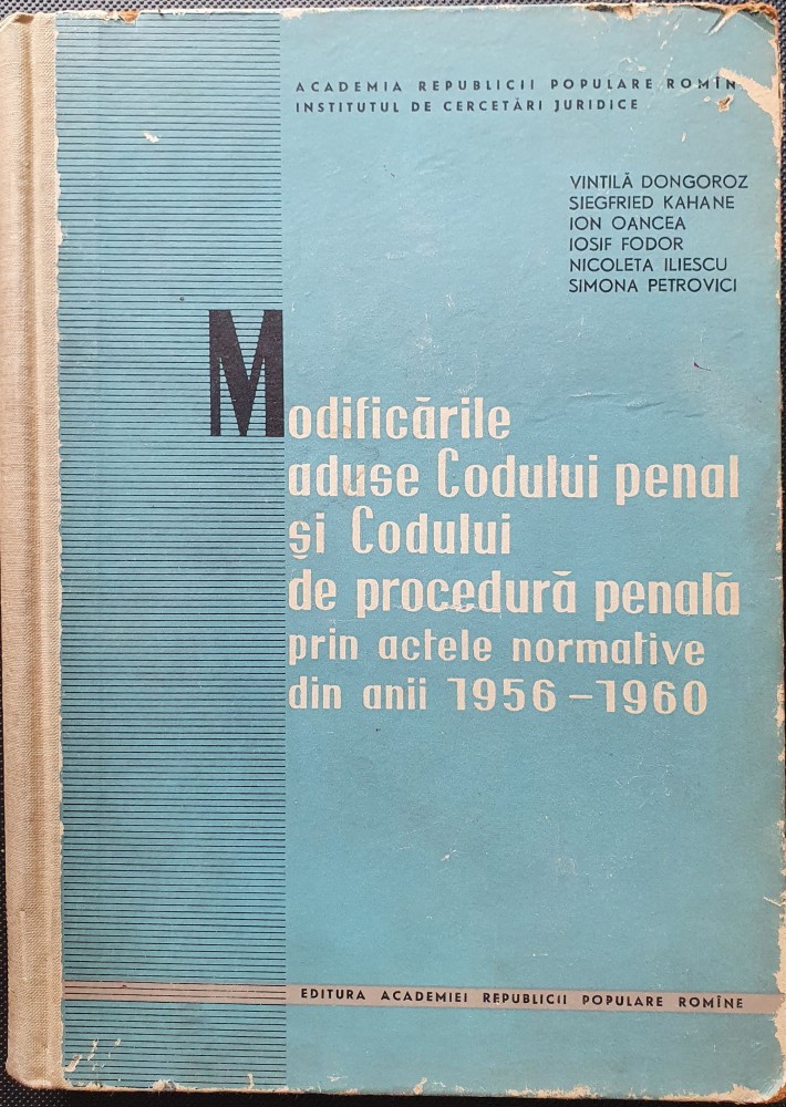 Vintila Dongoroz Modificarile aduse Codului penal si codului de procedura penala prin acte normative din anii 1956-1960 -Kahane, Oancea, Iliescu, Petrovici