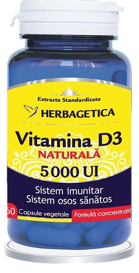 Vitamina D3 Naturală 5000 UI 60 Capsule Vegetale Herbagetica
