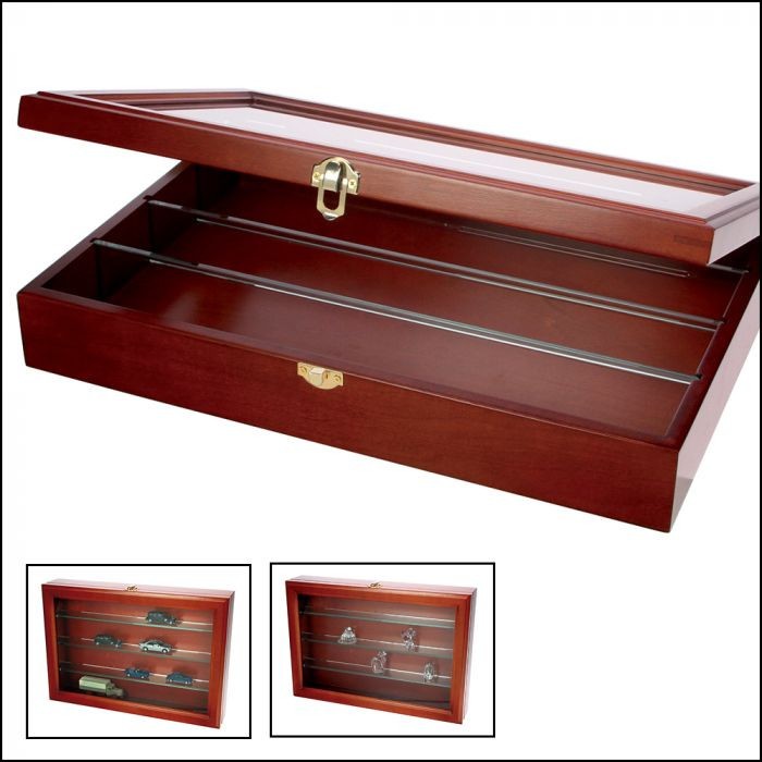 De inalta calitate si foarte elegant. Artizanat din lemn masiv, colorat cu mahon. Cu geam si rafturi de sticla (sticla cu grosimea de 5 mm). Vitrina poate fi agatata pe perete ori se asaza pe o suprafata plata. Rafturile din sticla pot fi reglate la intervale de 3 cm. Dimensiunea rafturilor de sticla: 36 x 4 cm. Dimensiunile vitrinei: aproximativ 36 x 24 x 7 cm