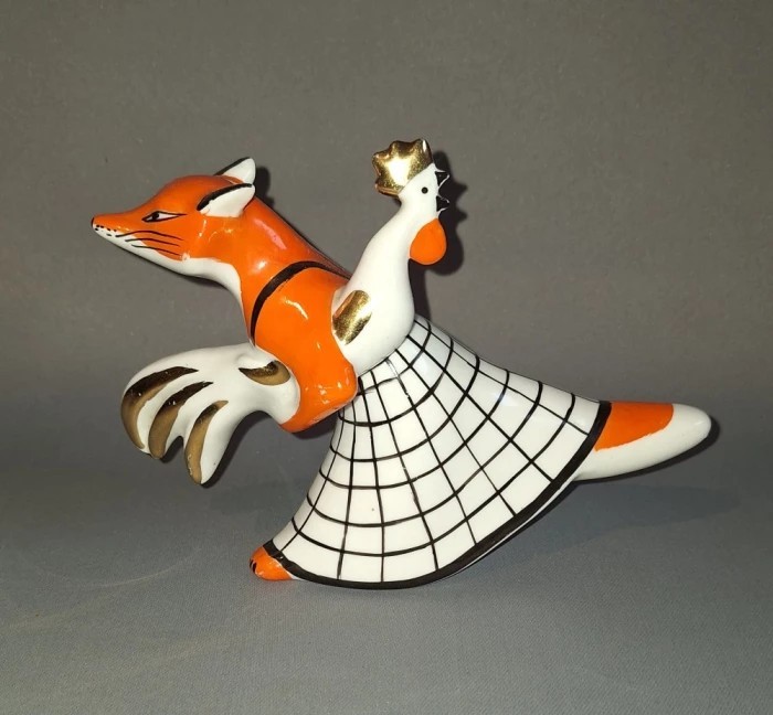 VULPE CU COCOȘ - VECHI PORȚELAN RUSESC GARDNER VERBILKI (DMITROV)