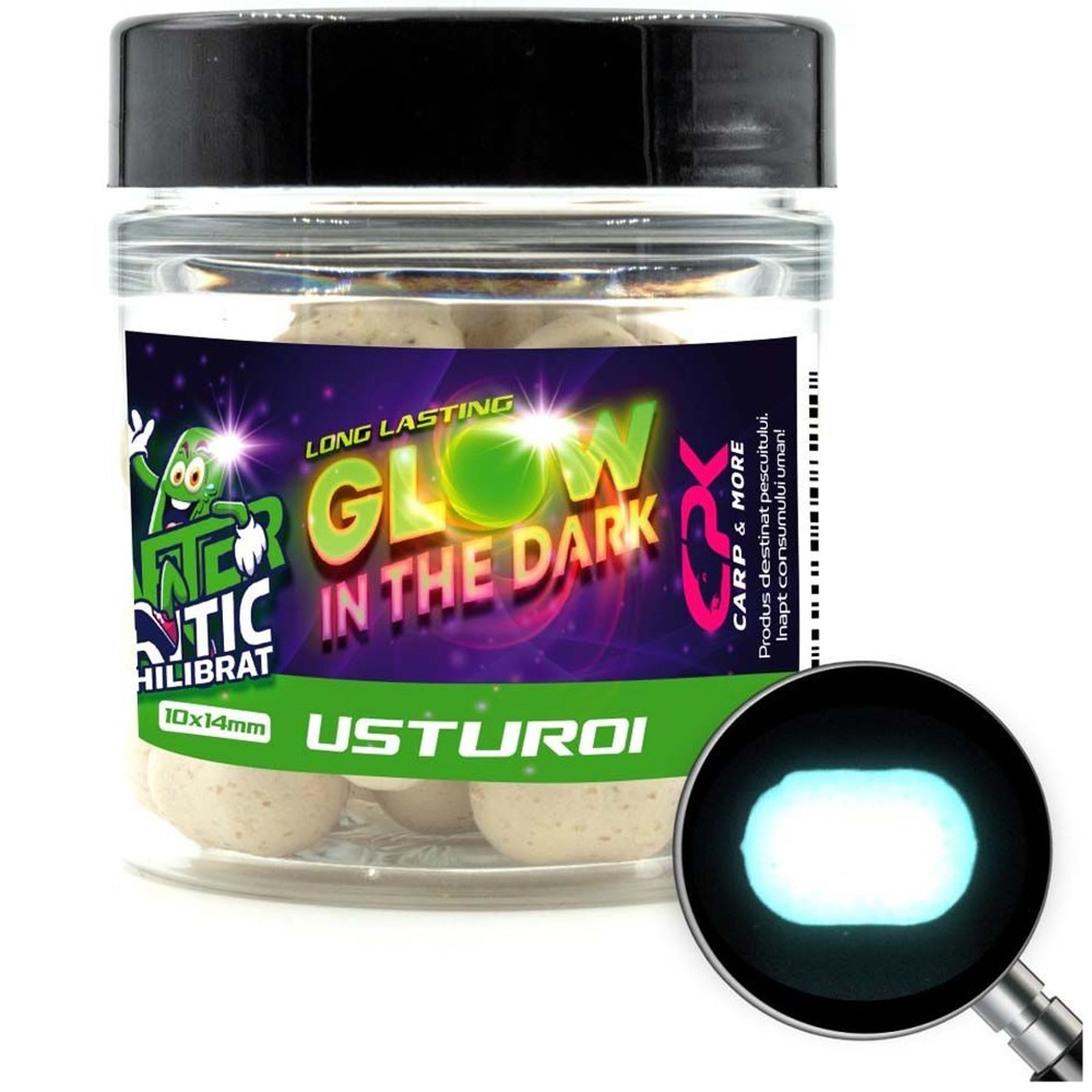 <h4>Wafters CPK Glow In The Dark Critic Echilibrate UV, Usturoi, 10x14mm</h4><p> </p><p>Nu mai este un secret pentru nimeni ca atractia vizuala este esentiala in pescuitul la crap. </p><p>Pornind asadar de la un concept simplu - culori foarte vizibile, noua gama CPK Glow in the Dark isi propune sa duca la superlativ atractia vizuala. </p><p>Concret, aceasta gama contine momeli de carlig tratate fosforescent pentru a fi vizibile inclusiv la intuneric. </p><p>Prin expunerea la o sursa de lumina UV sau pur si simplu la soare, obtineti momeli ce vor sta "aprinse" intre 2 si 6 ore, in functie de timpul de "incarcare". </p><p>In acest fel puteti pescui eficient, cu momeli de carlig ce nu pot fi neglijate nici chiar de catre cei mai apatici crapi, fie ca vorbim de pescuitul pe timp de noapte, fie pe timp de zi, in ape tulburi. </p><p>Bineinteles, momelile CPK Glow in the Dark sunt incredibil de eficiente si fara "activare", datorita aromelor puternice si culorilor de tip High Vis. </p><p>Gama CPK Glow in the Dark a fost gandita sa acopere toate scenariile de pescuit, continand pop-up-upuri, wafters (critic echilibrate) si pelete flotante, intr-o serie de arome si culori cu eficienta dovedita in timp. </p><p><br></p><p></p><p></p><iframe width="350" height="350" src="https://www.youtube.com/embed/wfigt9Jqxx0" title="Glow In The Dark Hook Baits" frameborder="0" allow="accelerometer; autoplay; clipboard-write; encrypted-media; gyroscope; picture-in-picture; web-share" allowfullscreen=""></iframe>