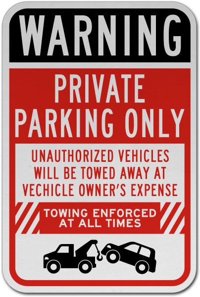 Warning Private Parking Only Sign, Warning Private Parking Only Unauthorized Vehicles Will Be Towed Away At Vehicle Owner's Expense Towing Enforced at All Times