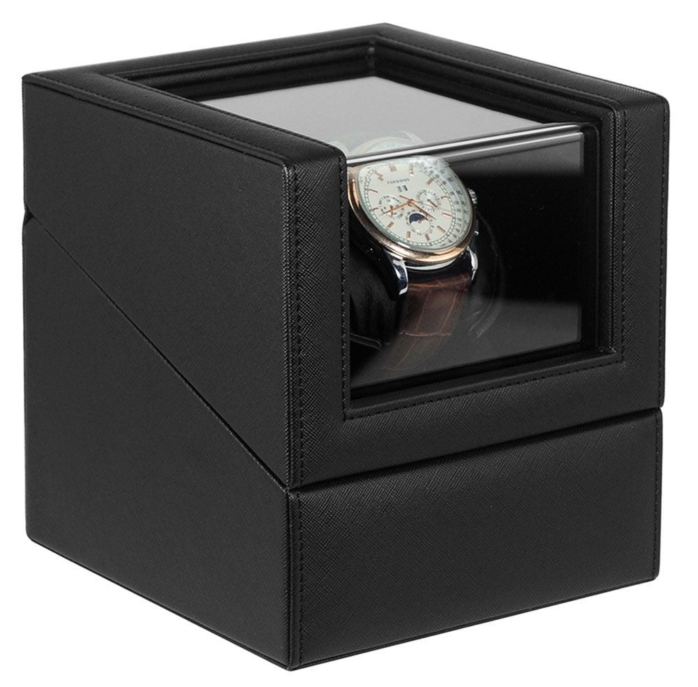 Cutie pentru un ceas automatic. Interior in catifea neagra. La exterior este imbracata in piele sintetica neagra de inalta calitate. Motoare foarte calitative cu 4 programe de intoarcere ceasuri automatice. Foarte economic in consumul de curent. Dimensiuni: 146 x 141 x 155 mm.