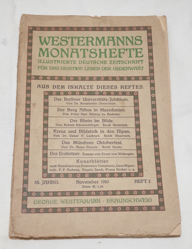 Carte veche anul 1910 WESTERMANNS MOMATSHEFTE - Revista germană ilustrată pentru viața spirituală contemporană.