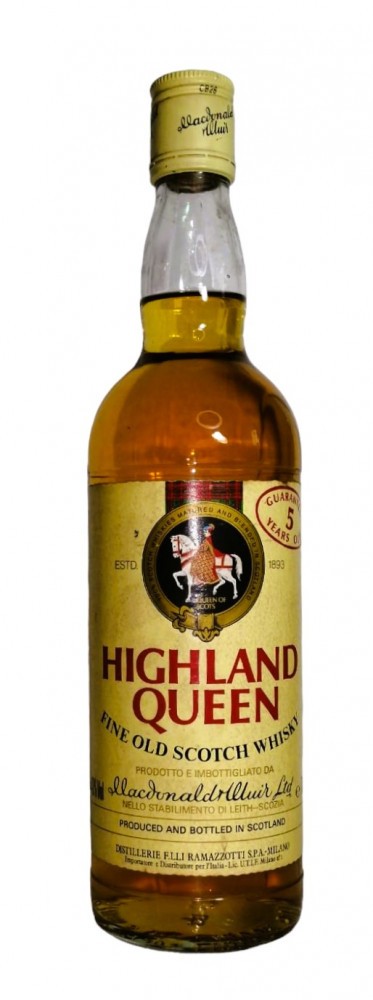 - whisky HIGHLAND QUEEN, 5 YO, FINE OLD SCOTCH WHISKY, IMP RAMAZZOTTI ITALY, cl 70 GR 40 ANII 90/2000