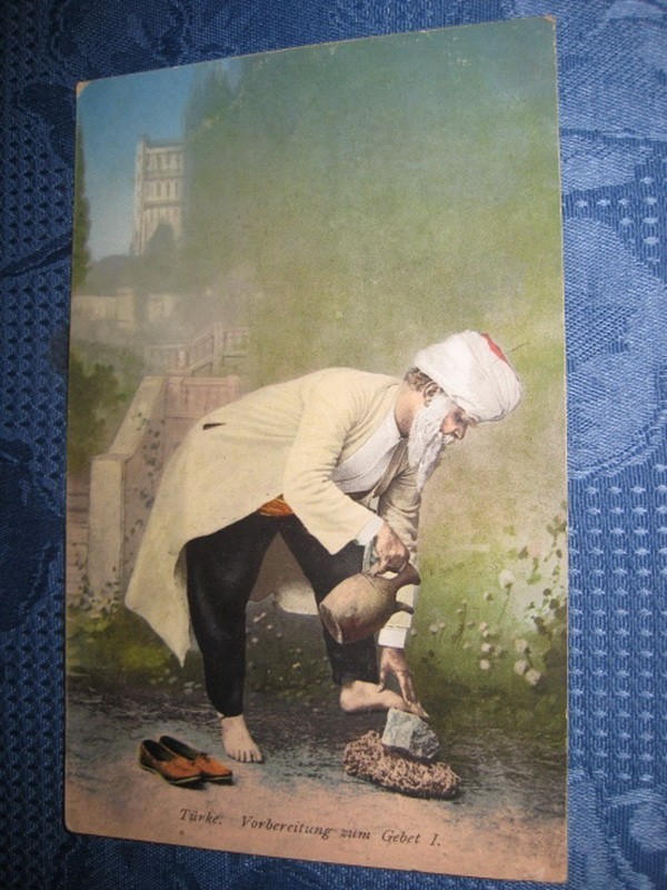 WW1- Turc-Pregatirea pentru rugaciune. Vorbereitung zum gebet. Stampile militare