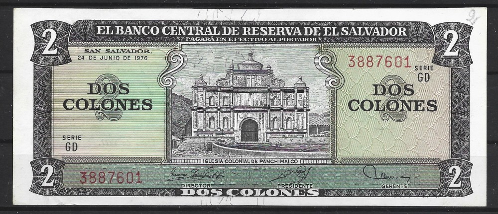 EL SALVADOR - 2 COLONES 1976 - P 124a.2 - UNC / CEA DIN SCAN