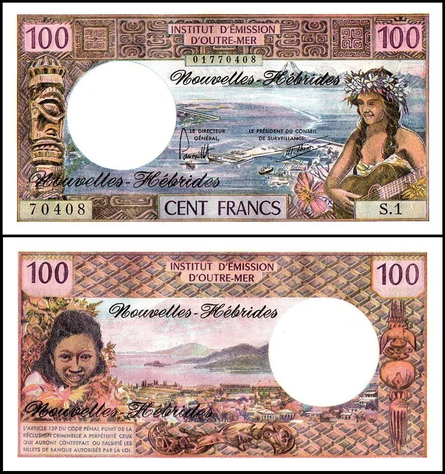 !!! X.RARR : NOILE HEBRIDE (VANUATU) - 100 FRANCI (1977) - P 18 d - UNC