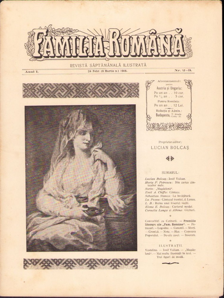Z55 Familia română, numărul 2-3, anul 1, 1908, Budapesta, proprietar-editor Lucian Bolcaș