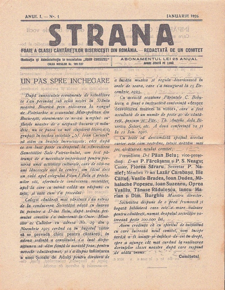 Z907N Strana, foaie a clasei cântăreților bisericești din România, anul I, numărul 1, 1926