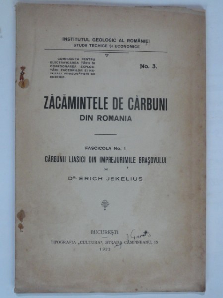 ZACAMINTELE DE CARBUNI DIN ROMANIA. CARBUNI LIASICI DIN IMPREJURIMILE BRASOVULUI - ERICH JEKELIUS