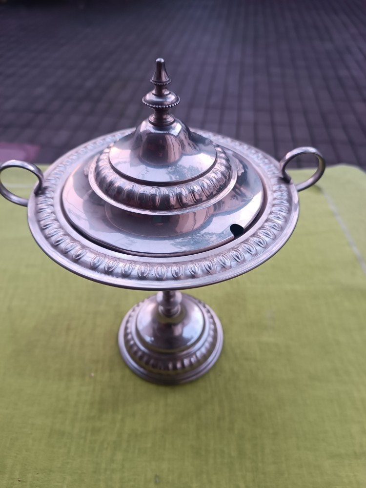 Este o zaharnita frumoasa din alpaca argintata, un vas mic cu 2