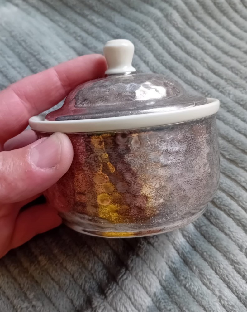 Zaharnita portelan si metal argintat WMF cu marcaj la fund, folosit in stare buna