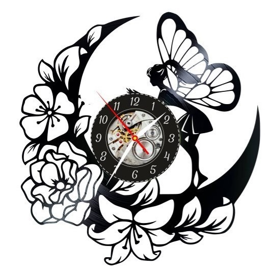 Introduceți un strop de magie și mister în casa dumneavoastră cu acest ceas de perete unic, o adevărată capodoperă artizanală realizată dintr-un disc de vinil reciclat și inspirată de lumea fascinantă a zânelor.