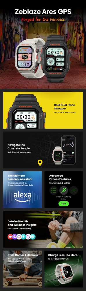 Descoperă Zeblaze Ares GPS, un smartwatch conceput pentru cei care vor mai mult decât un ceas inteligent — un partener de aventură. Cu un design robust, display generos, şi funcţii avansate de tracking, acest model îţi oferă libertatea de mişcare şi controlul complet asupra activităţii şi sănătăţii tale.