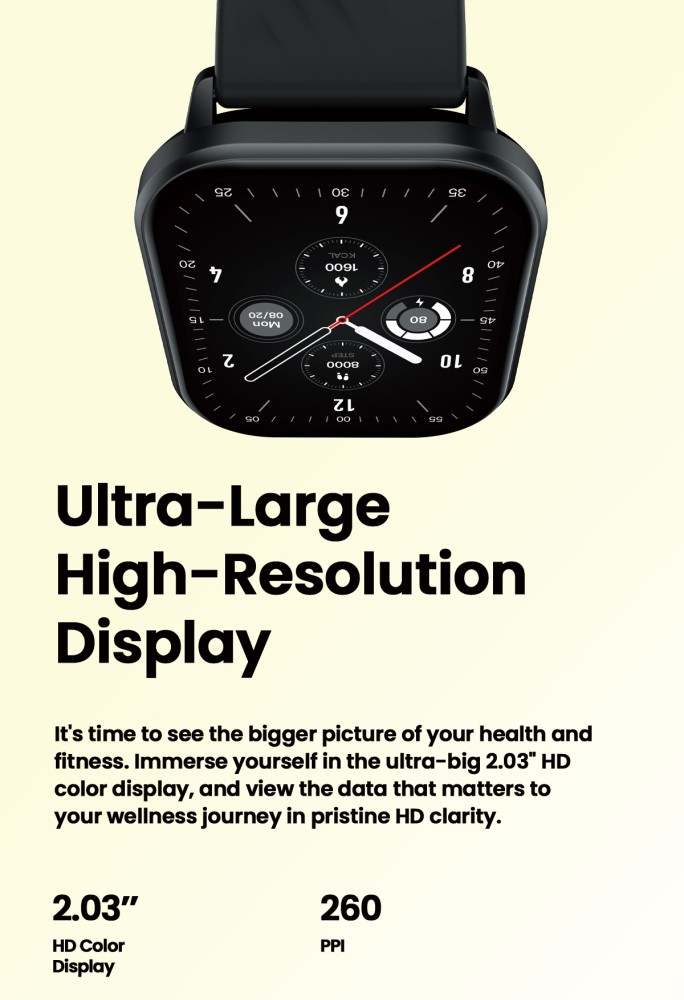 🌈 Ecran ultra-mare de 2.03" – claritate și stil