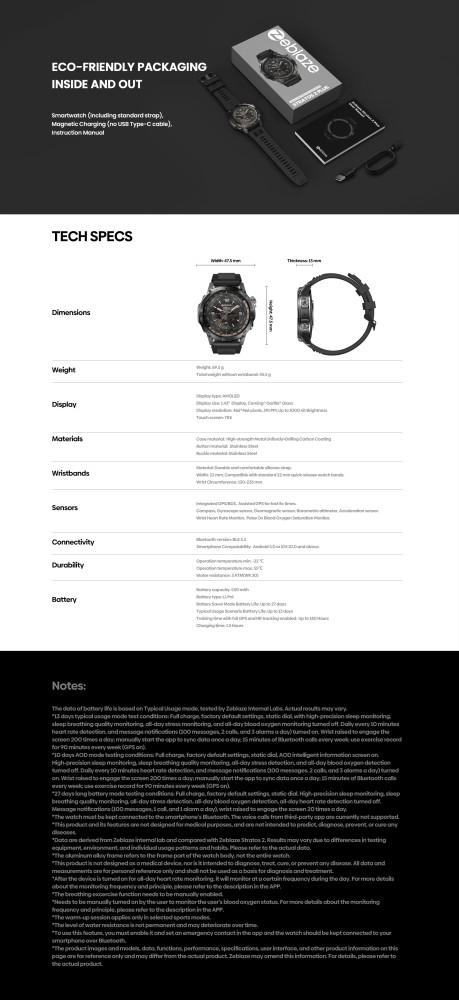 Zeblaze Stratos 2 Plus Smartwatch 1.43 AMOLED, GPS+BDS, Altimetru, Busola, 530mAh, 3ATM, BLE 5.3