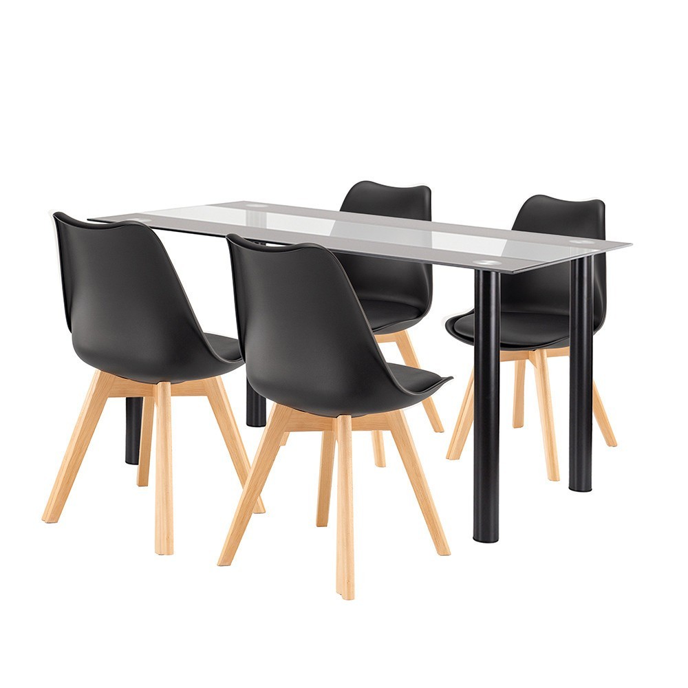 Set de masă Zelma 4 în 1 negru-negru – armonia perfectă între o masă modernă din sticlă și scaune confortabile