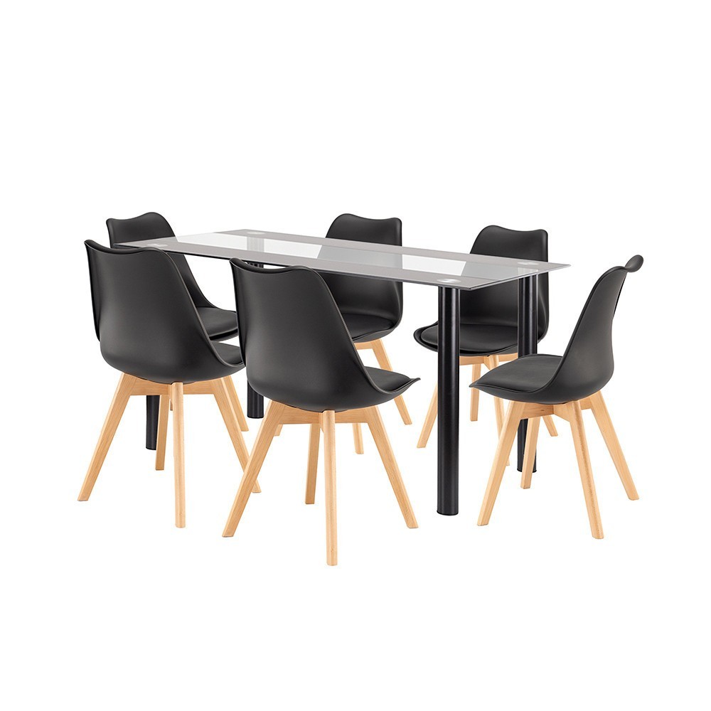 Set de masă Zelma 6 1 negru-negru – armonia perfectă între o masă modernă din sticlă și scaune confortabile