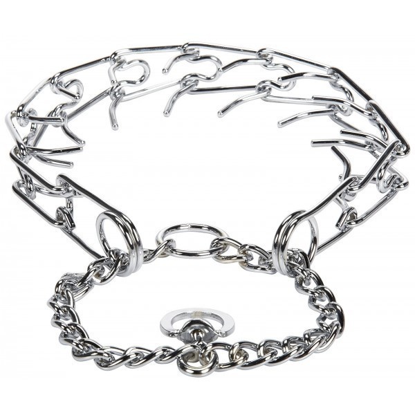 Zgarda metalica confectionata din otel de inalta rezistenta, recomandata cainilor de talie medie si mare. Elementele zgarzii se pot demonta sau adauga pentru o ajustare cat mai buna in jurul gatului. Are grosimea 3mm si lungimea 40cm.