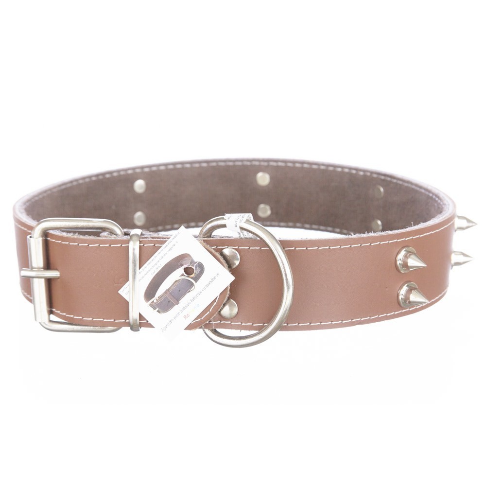 Zgarda piele cu colti dublii nr 5 maro